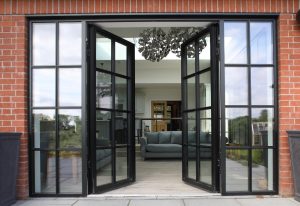 Pintu kaca berkusen aluminium merupakan pilihan favorit untuk rumah modern minimalis. Kombinasi kaca dan aluminium memberikan tampilan yang bersih, simpel, dan elegan.