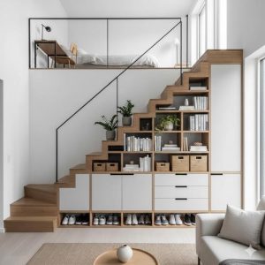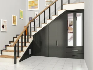 Ruang di bawah tangga sering dibiarkan kosong padahal dapat menjadi area multifungsi yang sangat berguna.