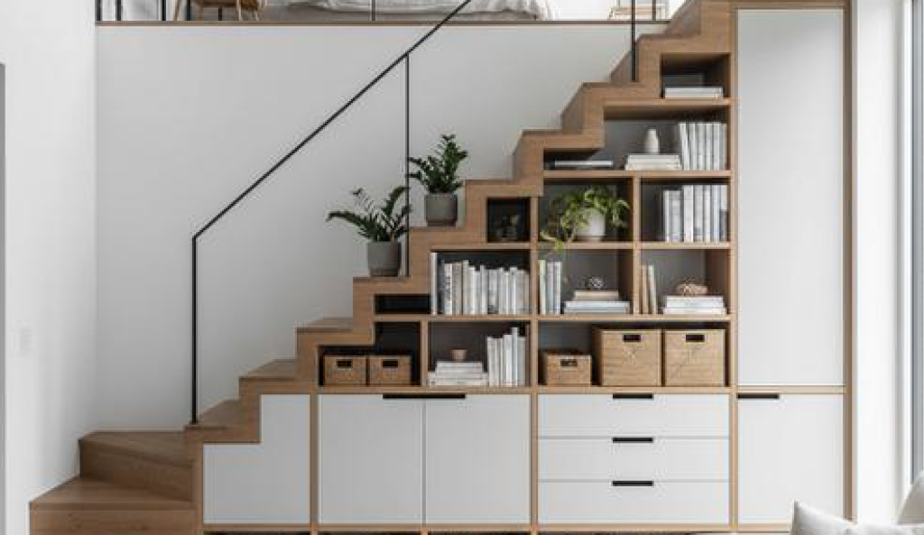 Ruang di bawah tangga sering dibiarkan kosong padahal dapat menjadi area multifungsi yang sangat berguna.